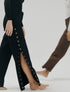 Pantalón de tiro alto con botonadura lateral y cremallera, tela con elongación para comodidad extra. La talla es fiel al tamaño.