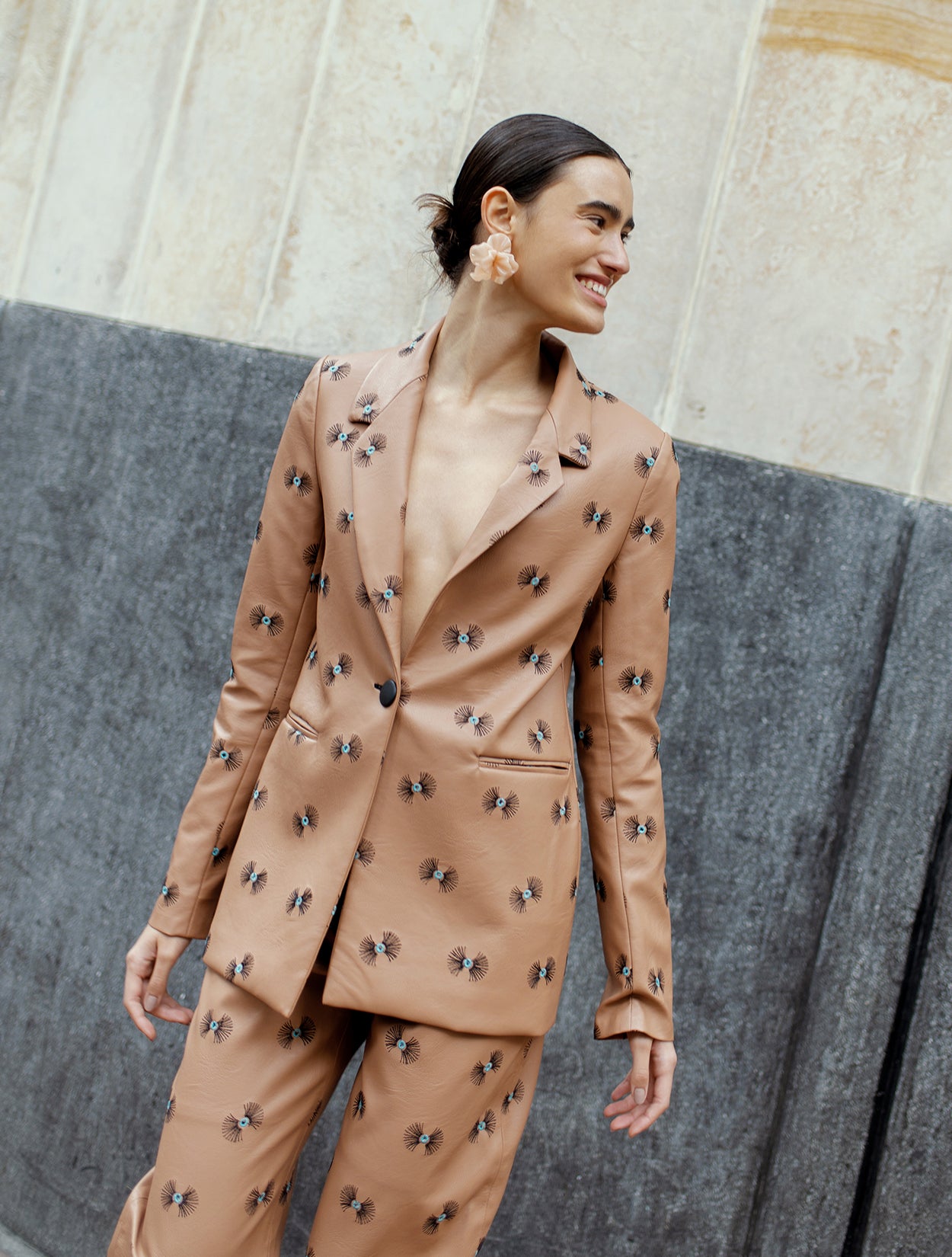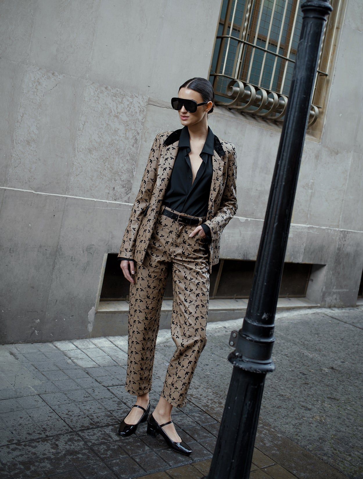 Pantalón de corte recto y tiro medio estilizan la figura, ofreciendo comodidad sin perder estructura. El diseño incluye pretina con pasadores, bolsillos funcionales. Diseñado para mujeres que buscan elegancia contemporánea y un estilo distintivo.
